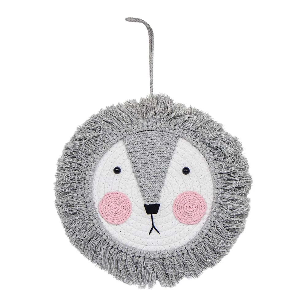 Adorno de parede em madeira e algodão, ideal para decorar o ambiente com leveza e diversão.