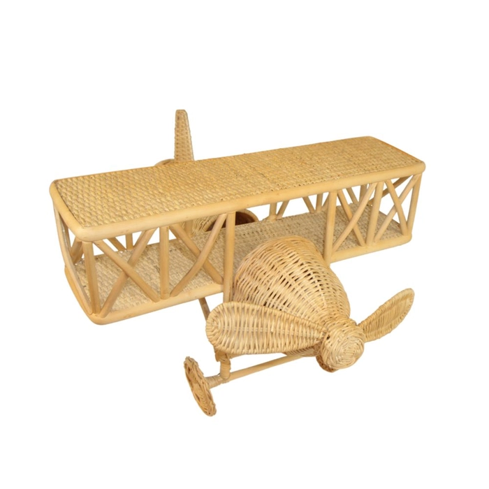 Avião decorativo em rattan, ideal para compor o ambiente infantil com charme natural.
