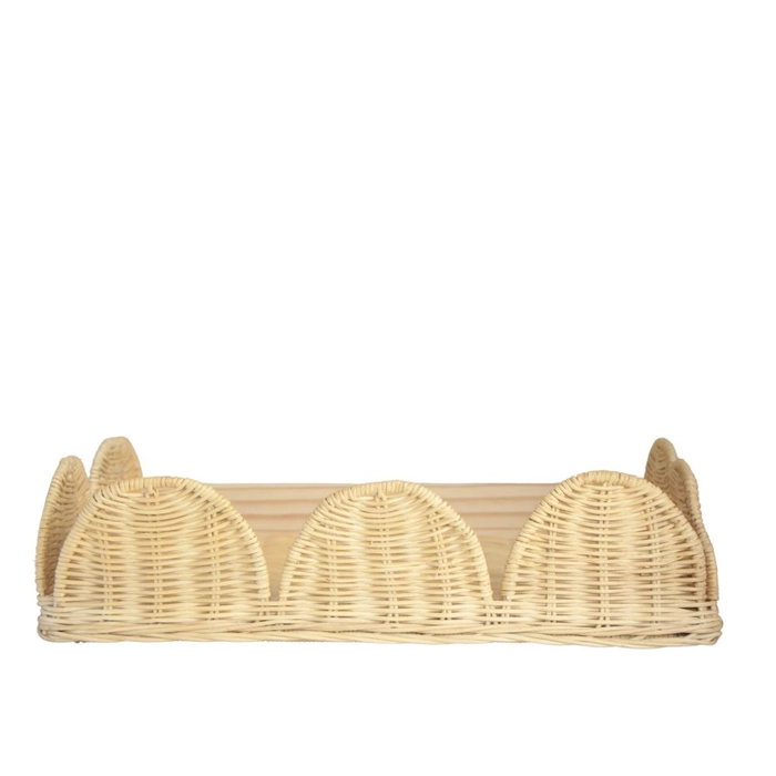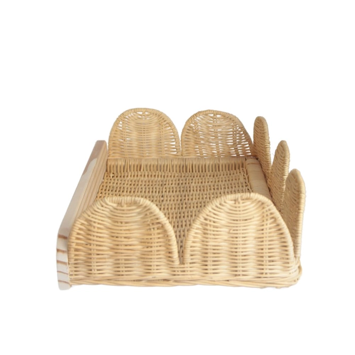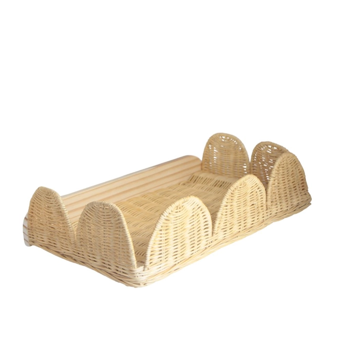 Bandeja em rattan com formato ondulado, ideal para decorar e organizar com charme.
