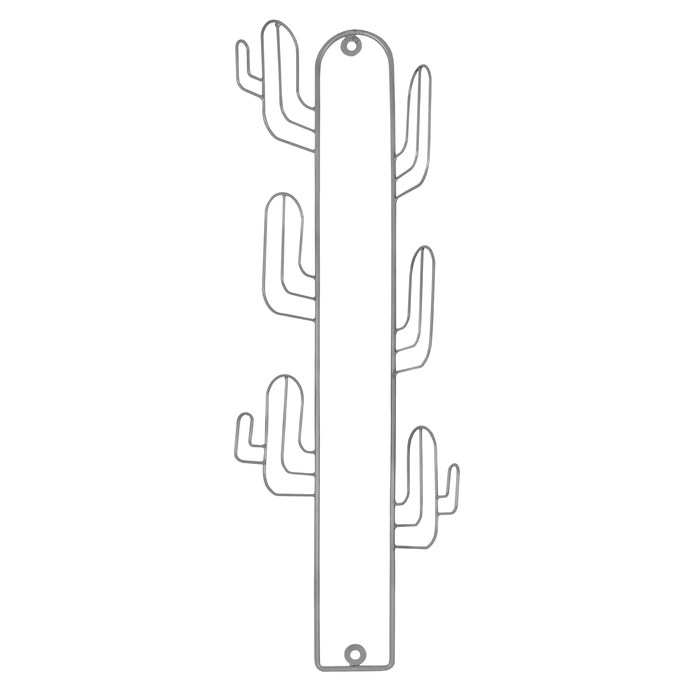 Cabideiro em metal formato cacto, ideal para organizar roupas e acessórios com praticidade.