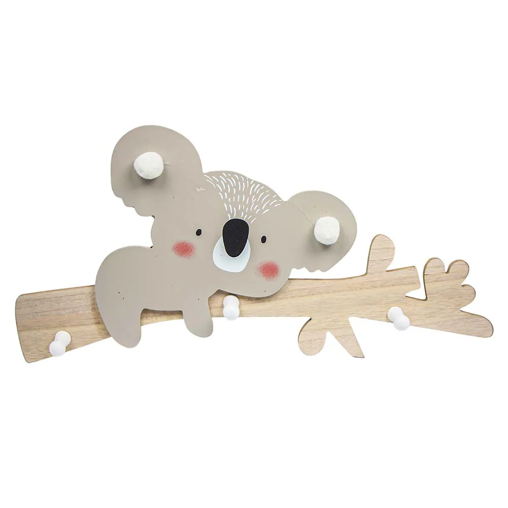 Cabideiro coala em MDF com 3 ganchos, ideal para organizar e decorar o quarto infantil.
