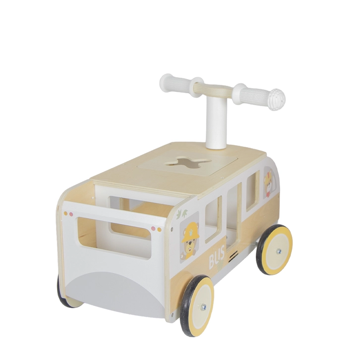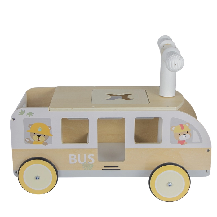 Carrinho em madeira com compartimento, ideal para brincar e estimular os primeiros passos.