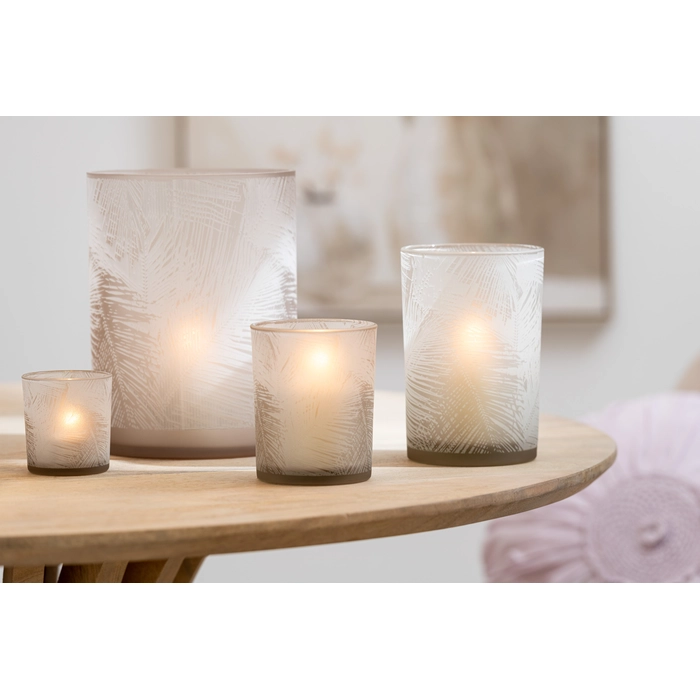 Castiçal Folhas em vidro, ideal para complementar a decoração com delicadeza, brilho e um toque elegante. Perfeito para composições acolhedoras.