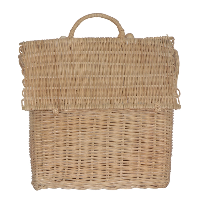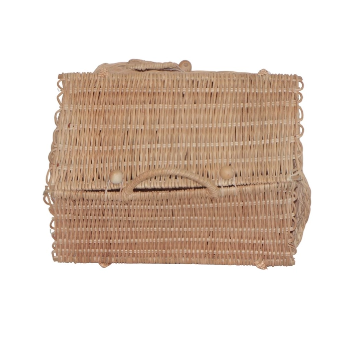 Cesta organizadora em rattan, ideal para guardar fraldas e pequenos objetos com charme.