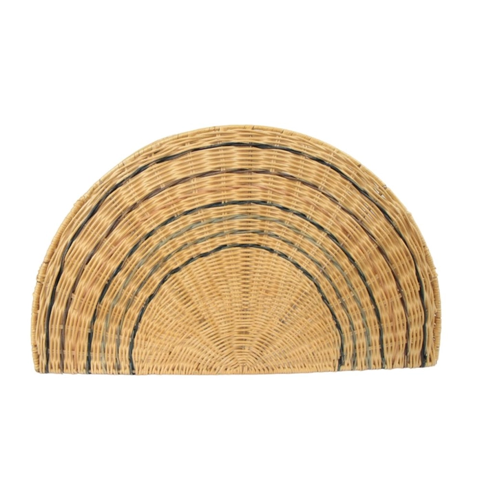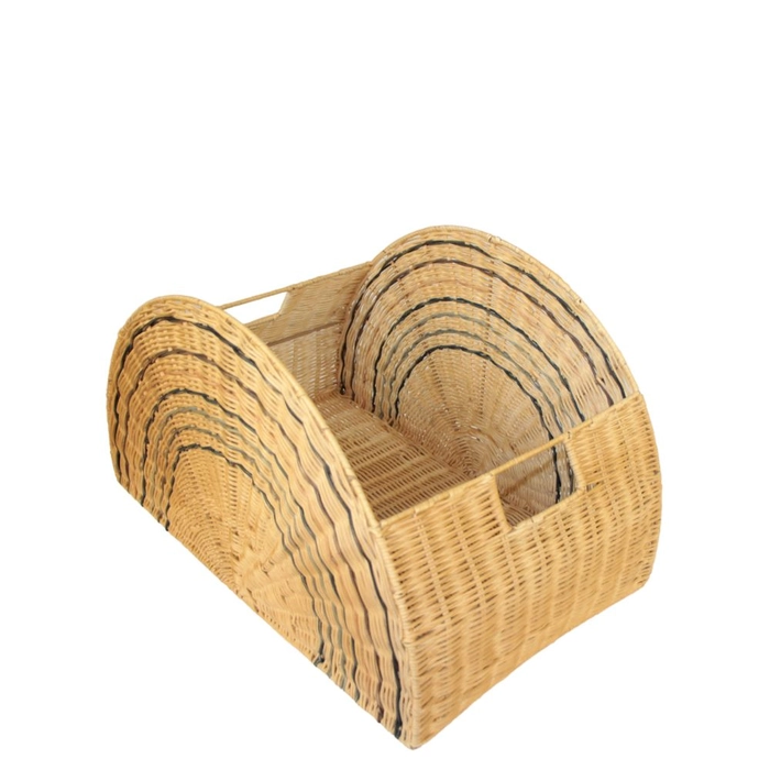 Cesto organizador em rattan com tema arco-íris, ideal para decorar e organizar com charme.