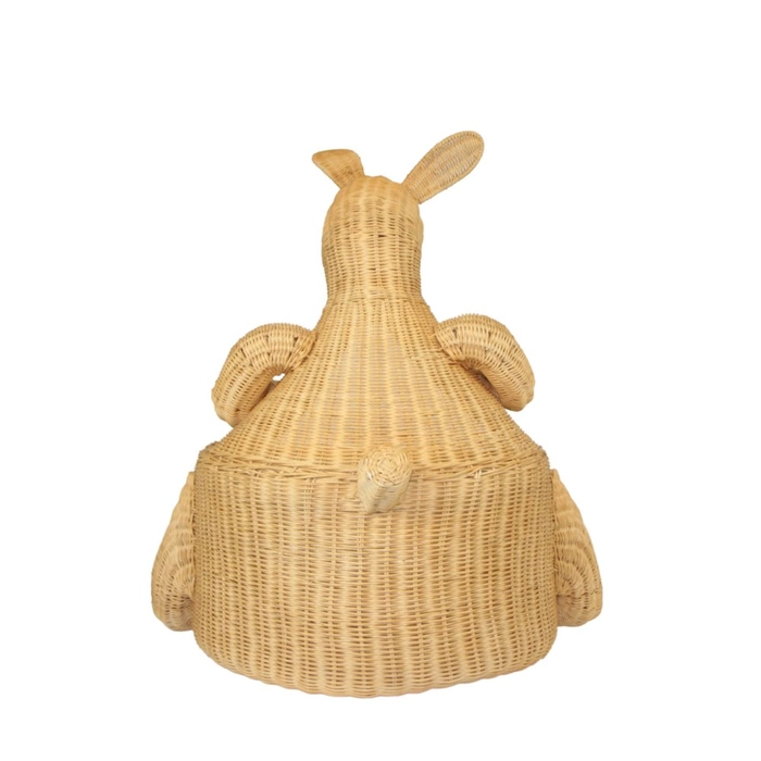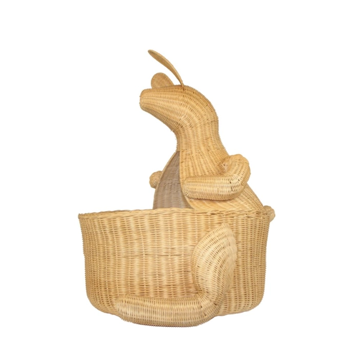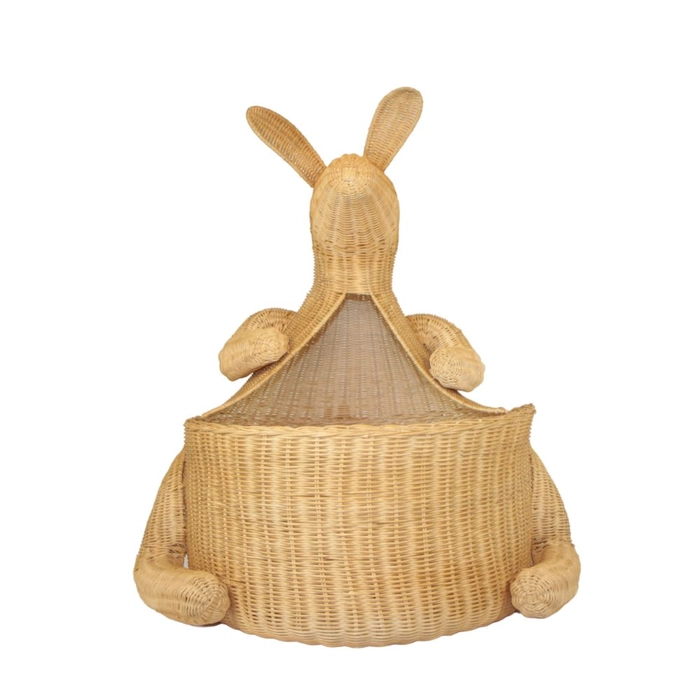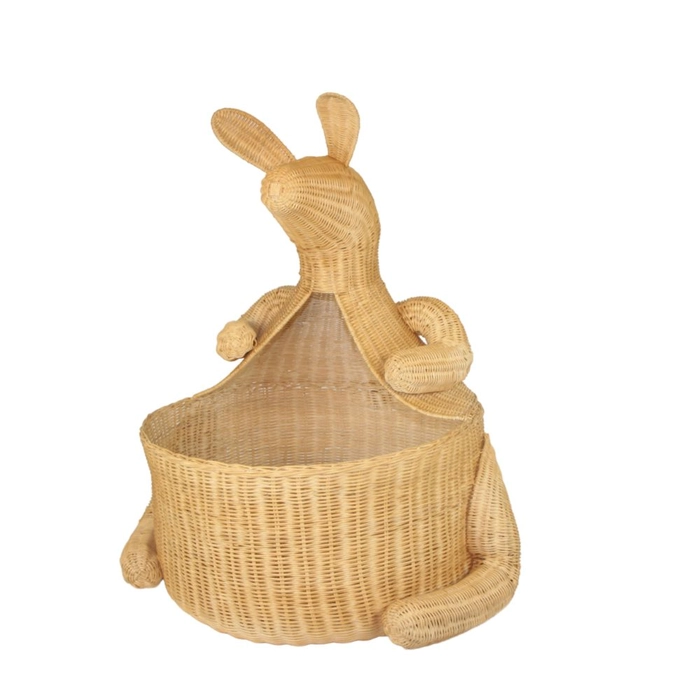 Cesto organizador em rattan com tema canguru, ideal para decorar e organizar com charme.