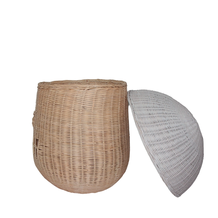 Cesto organizador em rattan com tampa, ideal para guardar brinquedos com charme e praticidade.