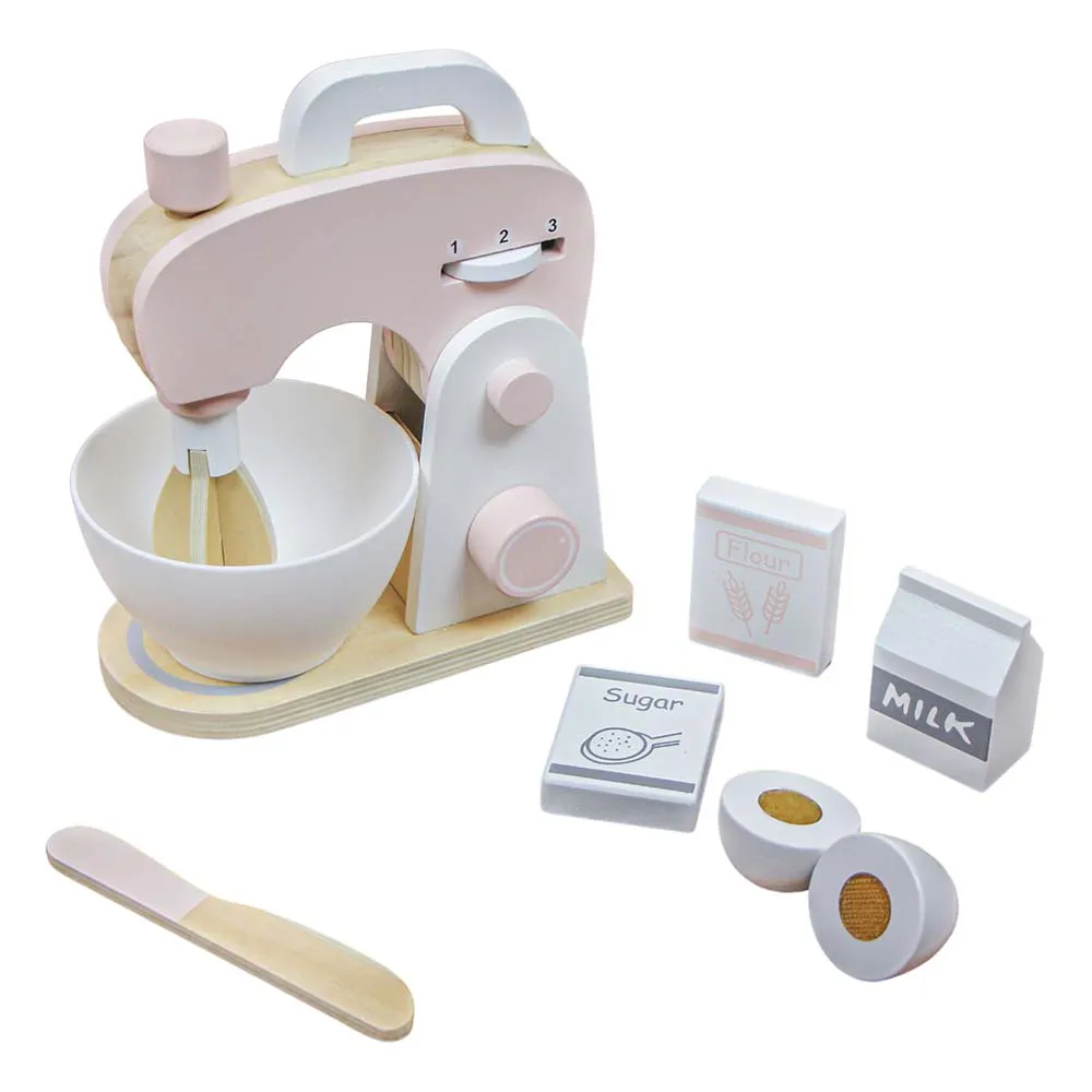 Conjunto de batedeira em madeira, ideal para brincadeiras criativas e faz de conta.