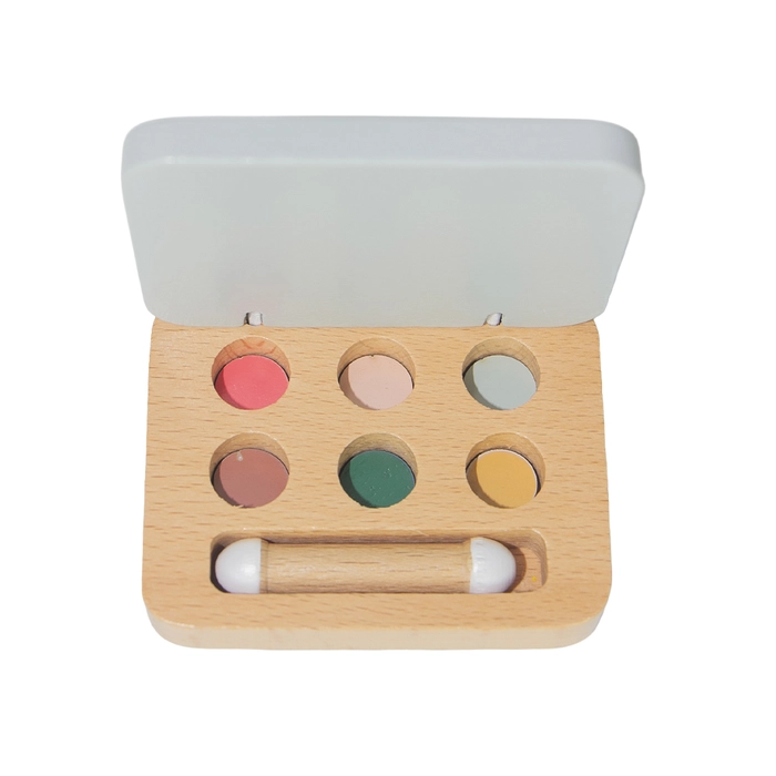Conjunto make up em madeira, ideal para brincadeiras criativas e faz de conta.