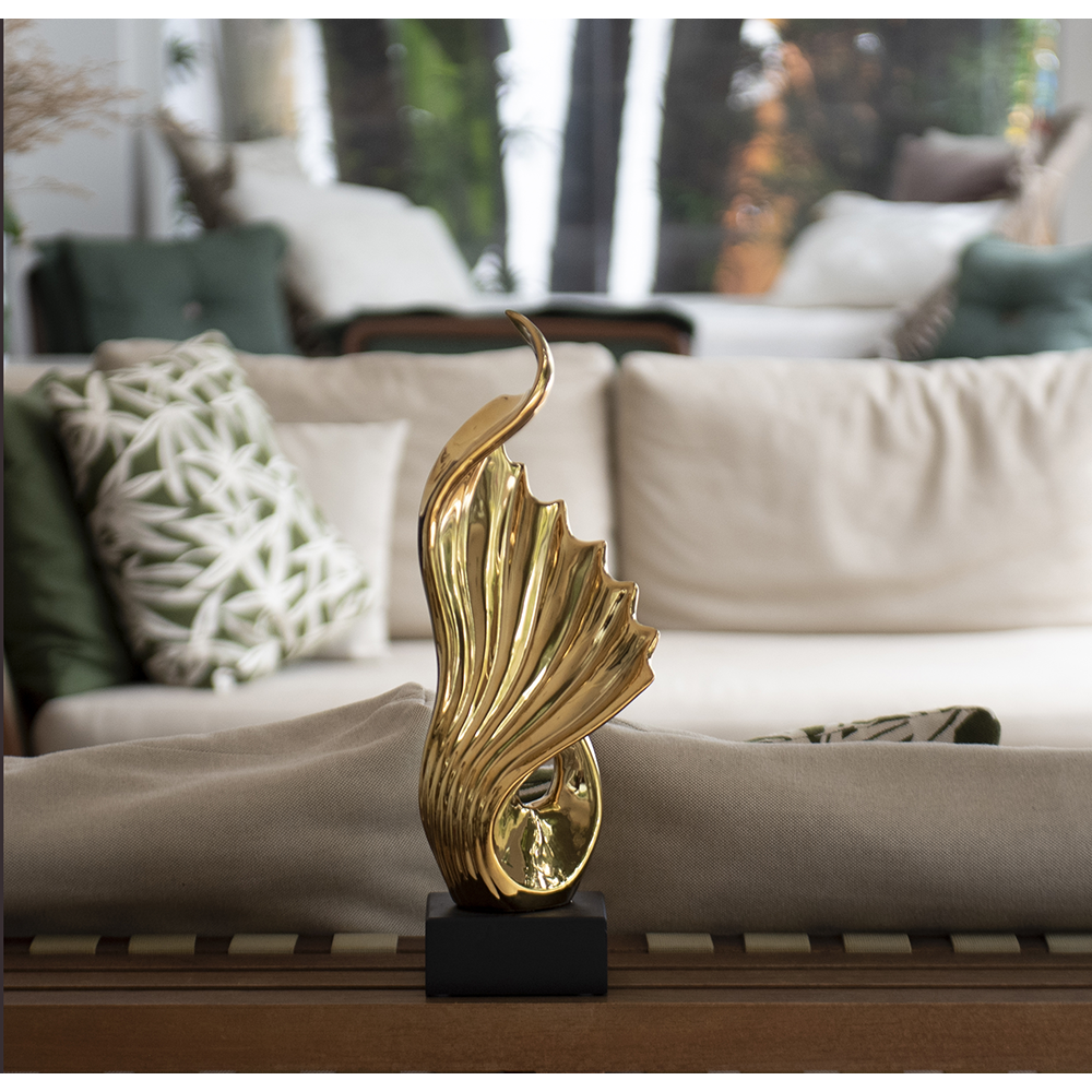 | Keywords | Escultura ondas, Escultura cerâmica, Escultura dourada e preta, Arte moderna, Decoração criativa |