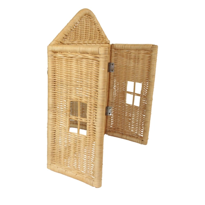 Espelho decorativo em rattan, ideal para compor o ambiente infantil com charme natural.