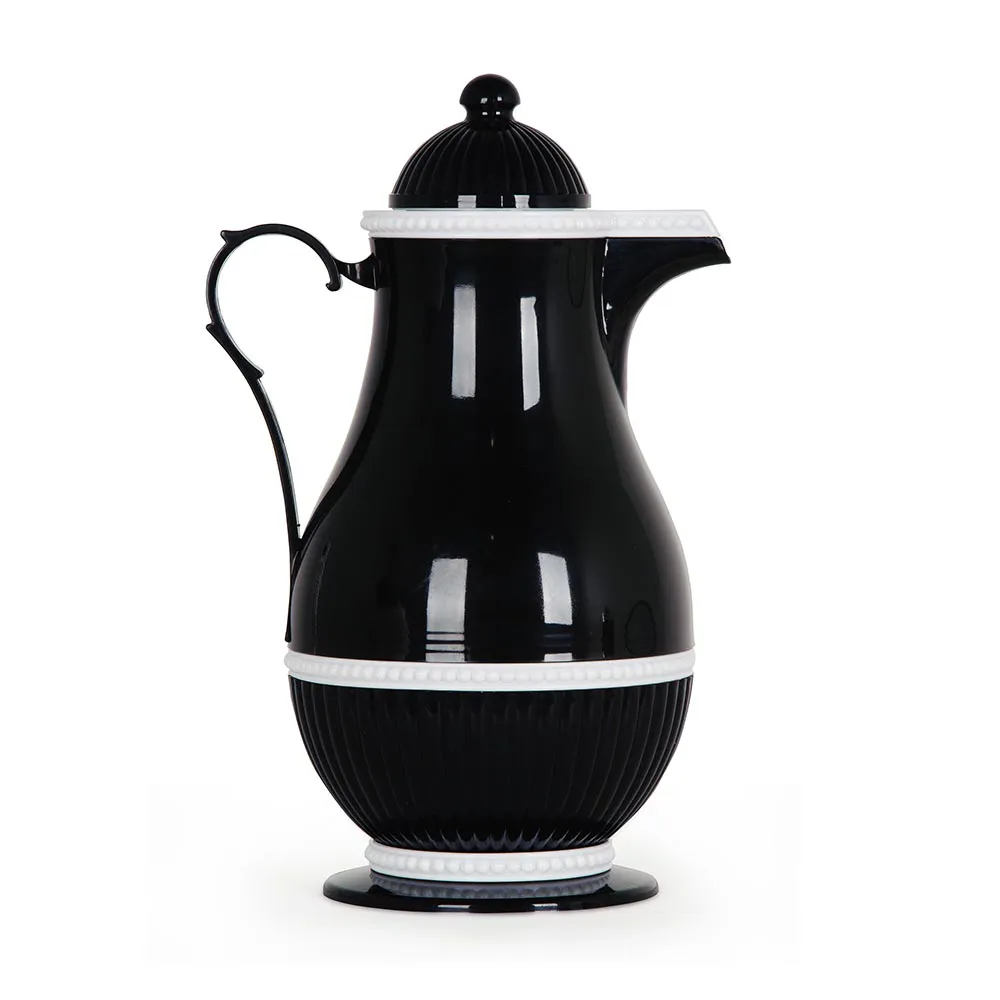 Garrafa térmica em melamina com vidro interno, ideal para manter líquidos aquecidos com estilo.