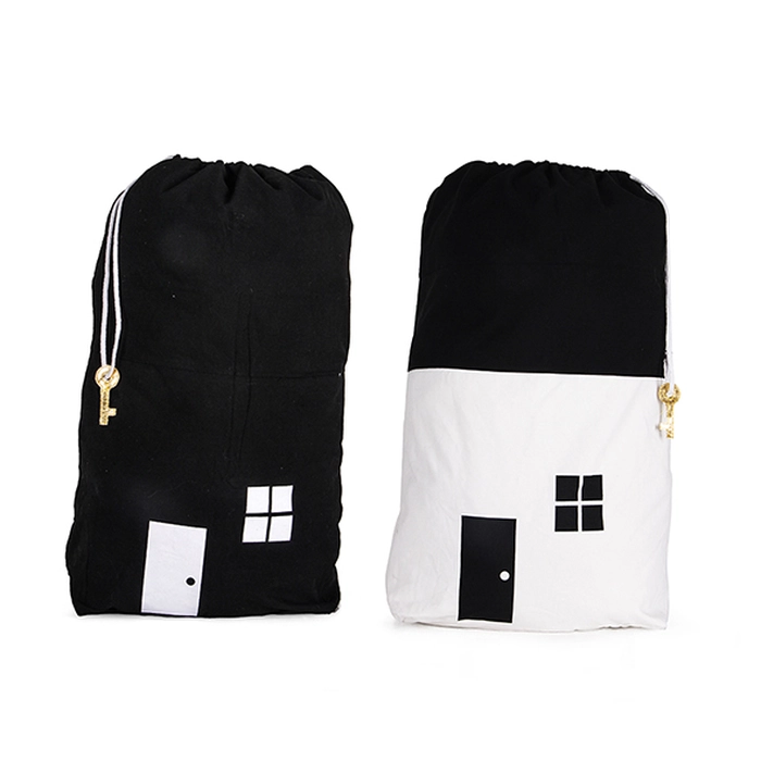 Jogo 2 cestos casinha p&b 66x55x21cm