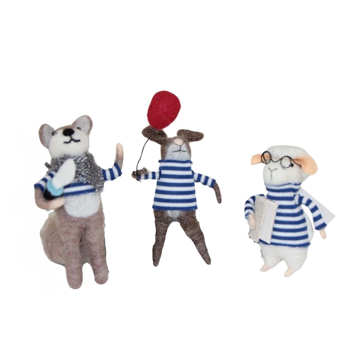 Jogo com 3 esculturas em feltro, ideal para brincadeiras criativas e decoração lúdica.