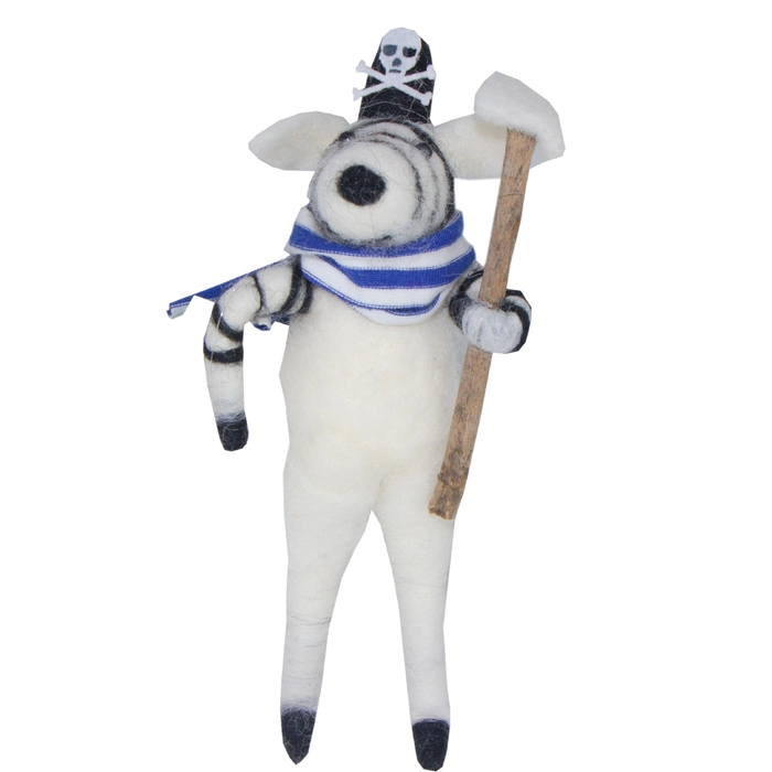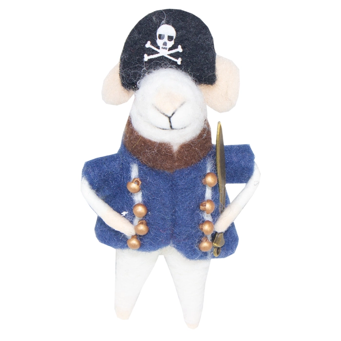 Jogo com 3 piratas em feltro, ideal para brincadeiras criativas e decoração lúdica.