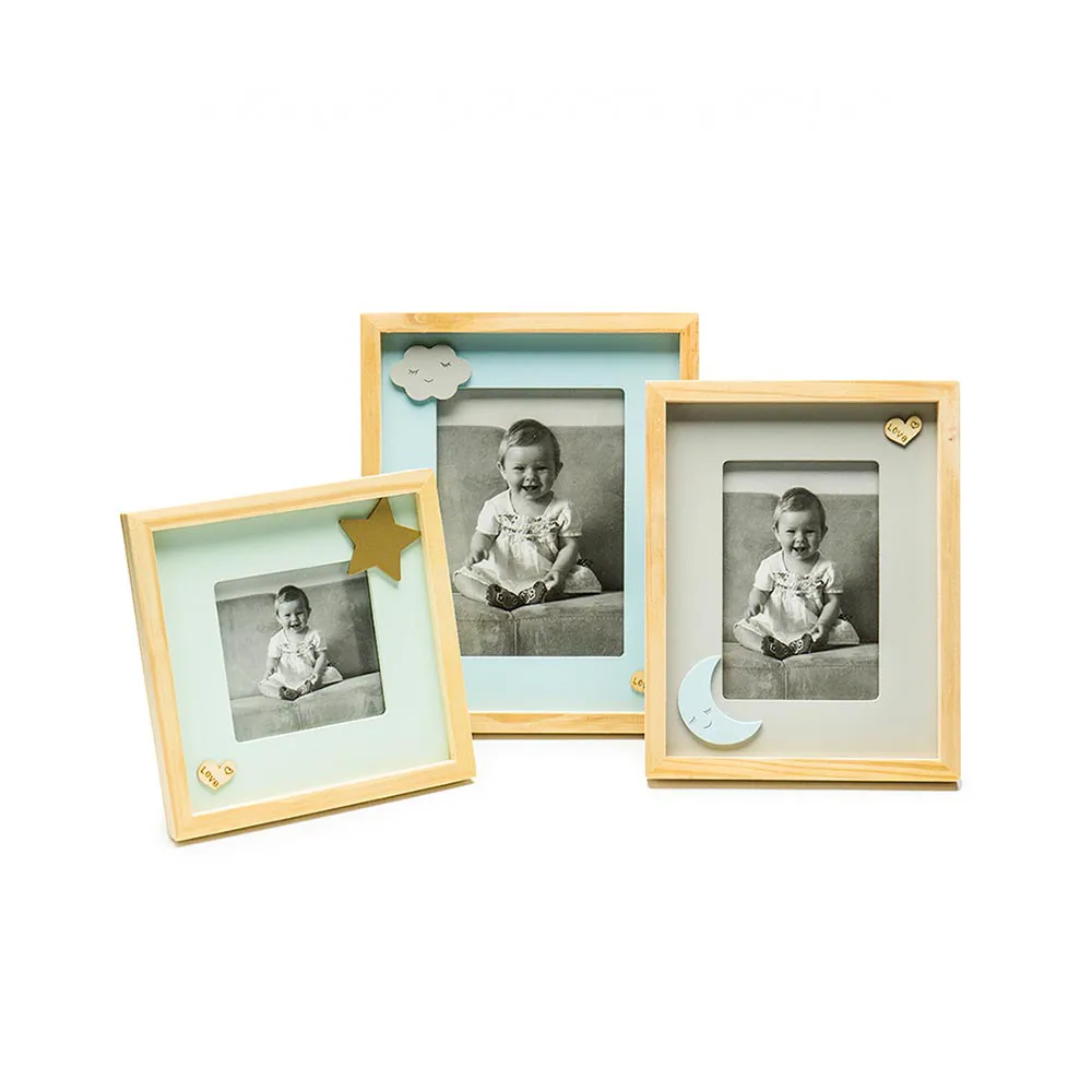 Jogo com 3 porta-retratos em MDF, ideal para decorar e guardar memórias especiais.