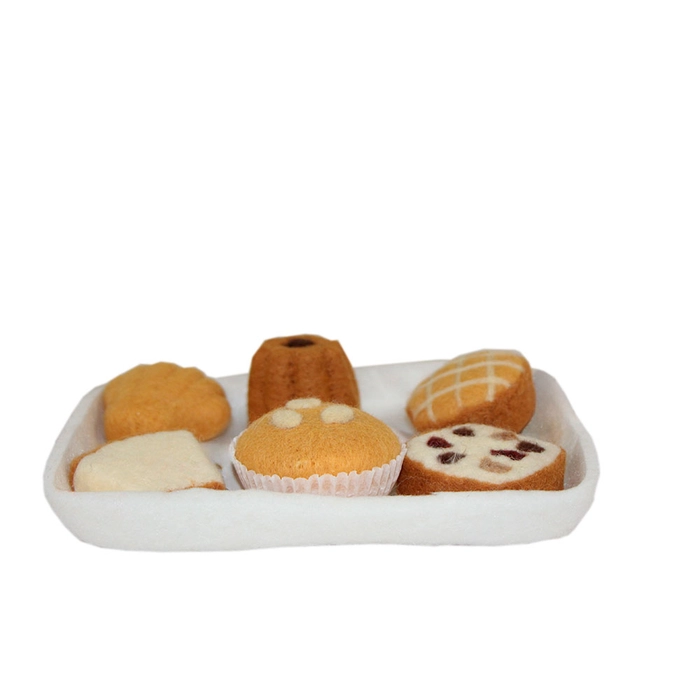 Jogo bandeja café em feltro, ideal para brincadeiras criativas e faz de conta.