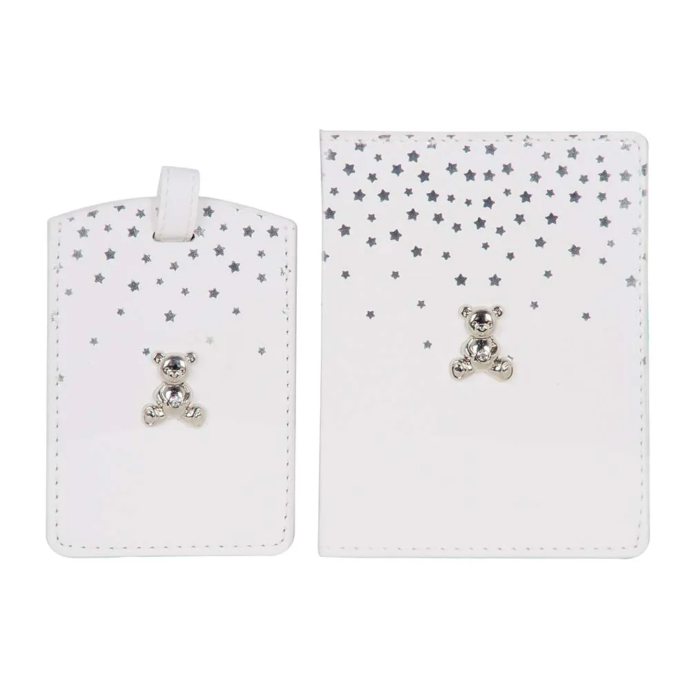 Jogo capa passaporte e tag em couro sintético, ideal para viagens com charme e praticidade.