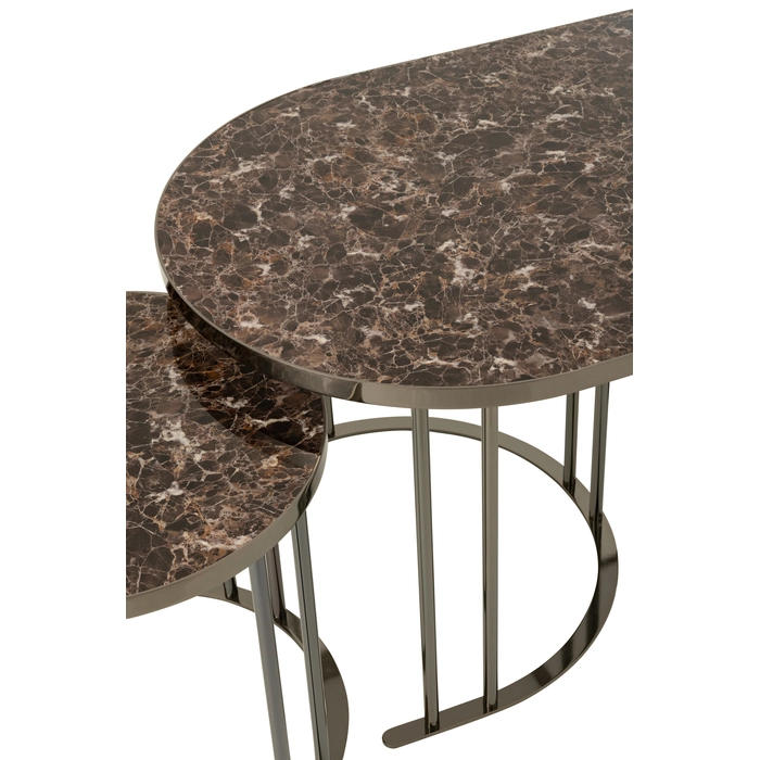 Jogo de 3 mesas em metal e MDF, ideal para compor ambientes com funcionalidade, estilo contemporâneo e sofisticação. Perfeito para salas modernas.