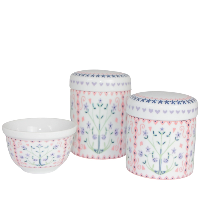 Kit higiene em porcelana com 4 peças, ideal para organizar e decorar o quarto do bebê.