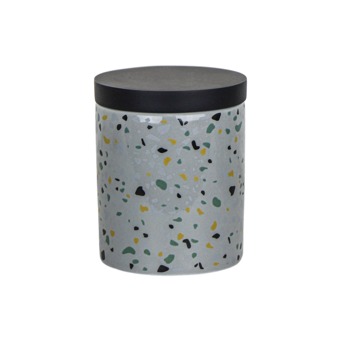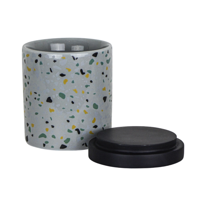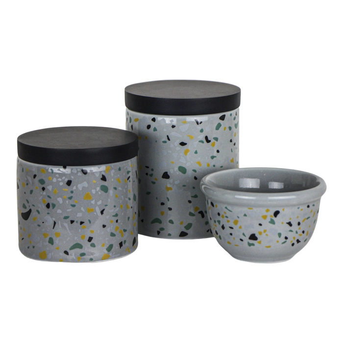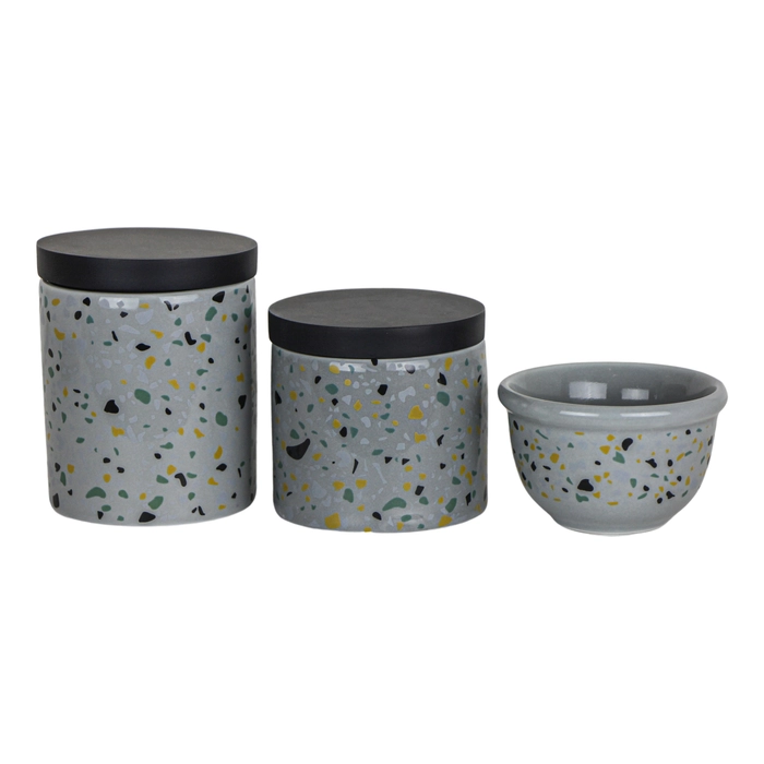 Kit higiene em porcelana com design terrazzo, ideal para decorar e organizar com modernidade.