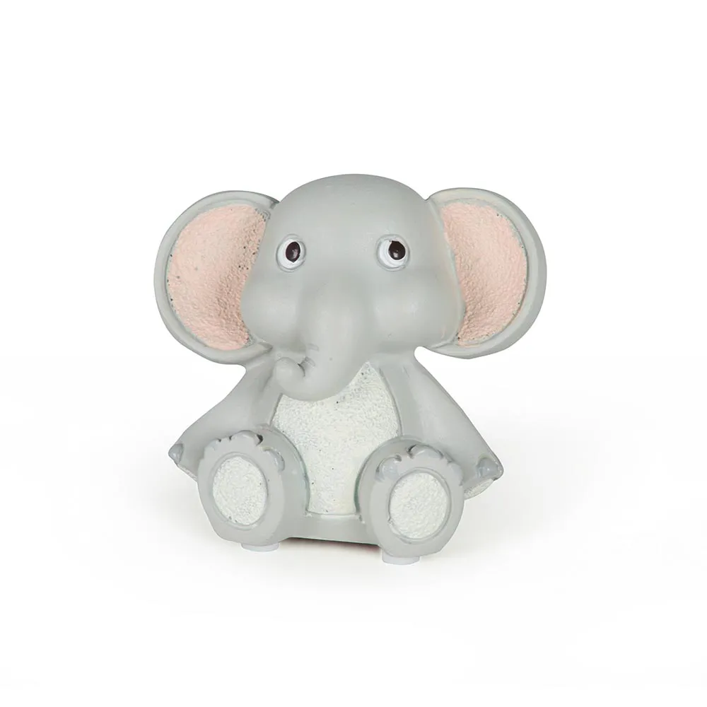 Mini escultura de elefante em resina, ideal para decorar o quartinho com delicadeza.