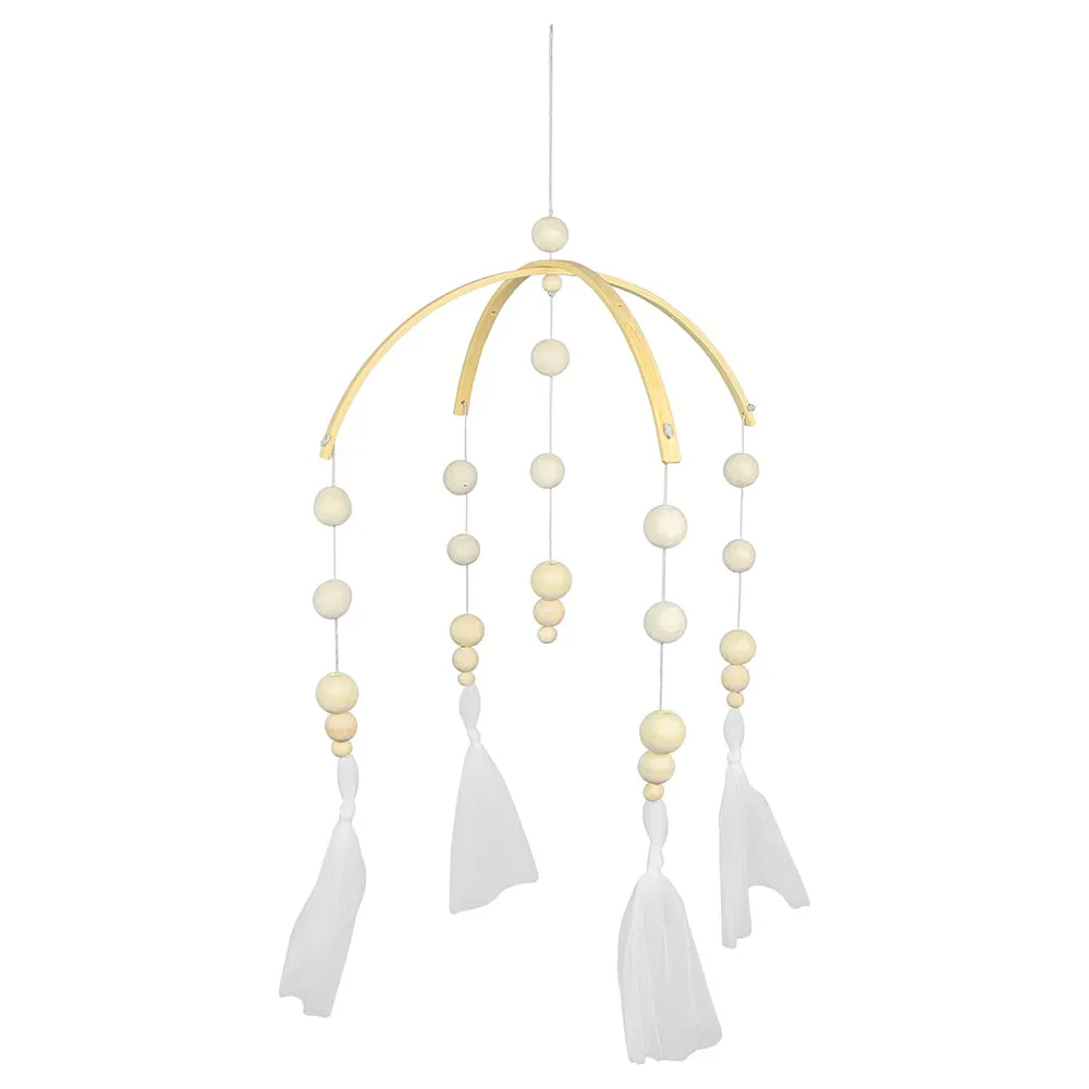 Móbile com madeira, feltro e tule, ideal para decorar e estimular o bebê.