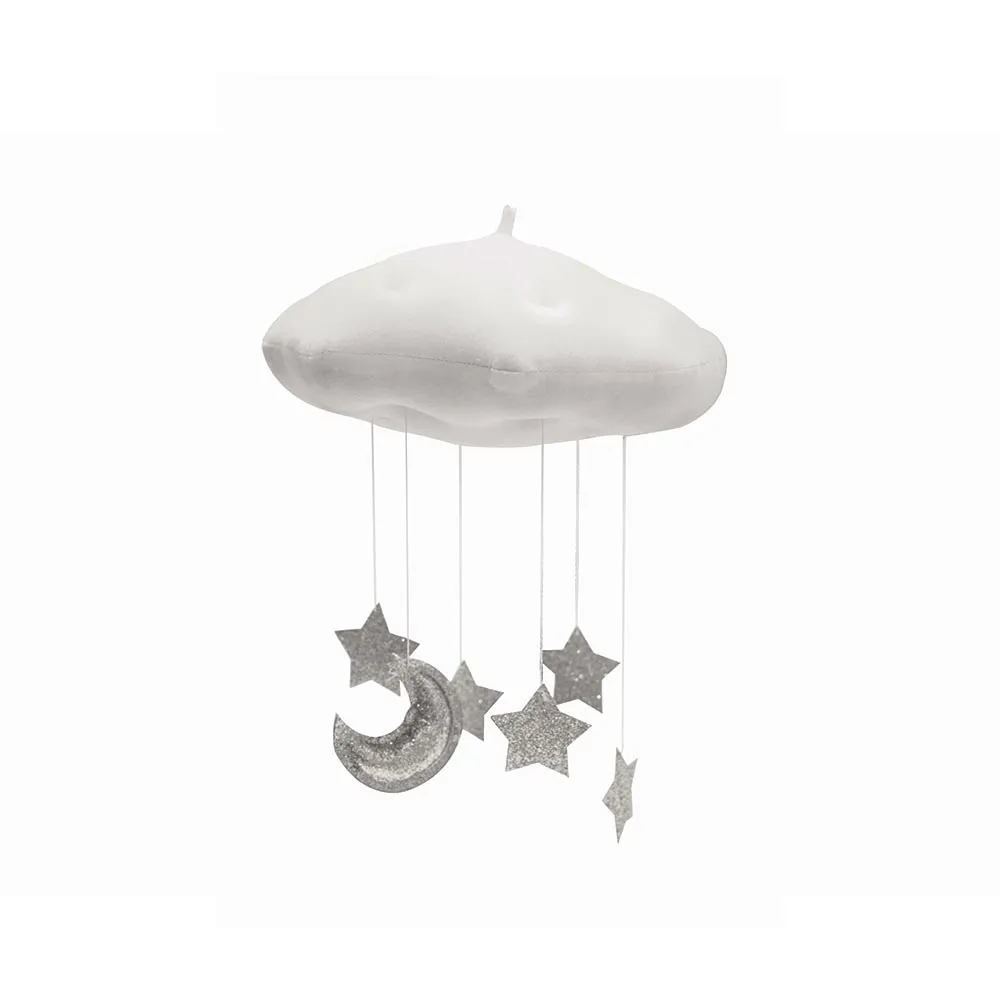 Móbile nuvem em poliéster, ideal para decorar o quarto infantil com delicadeza.