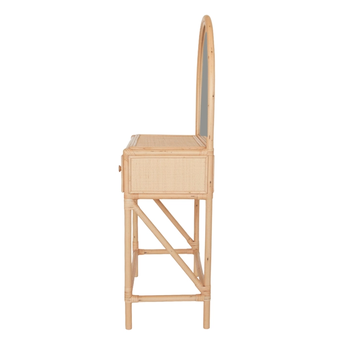 Penteadeira infantil em rattan, ideal para compor o ambiente com charme natural e delicadeza.