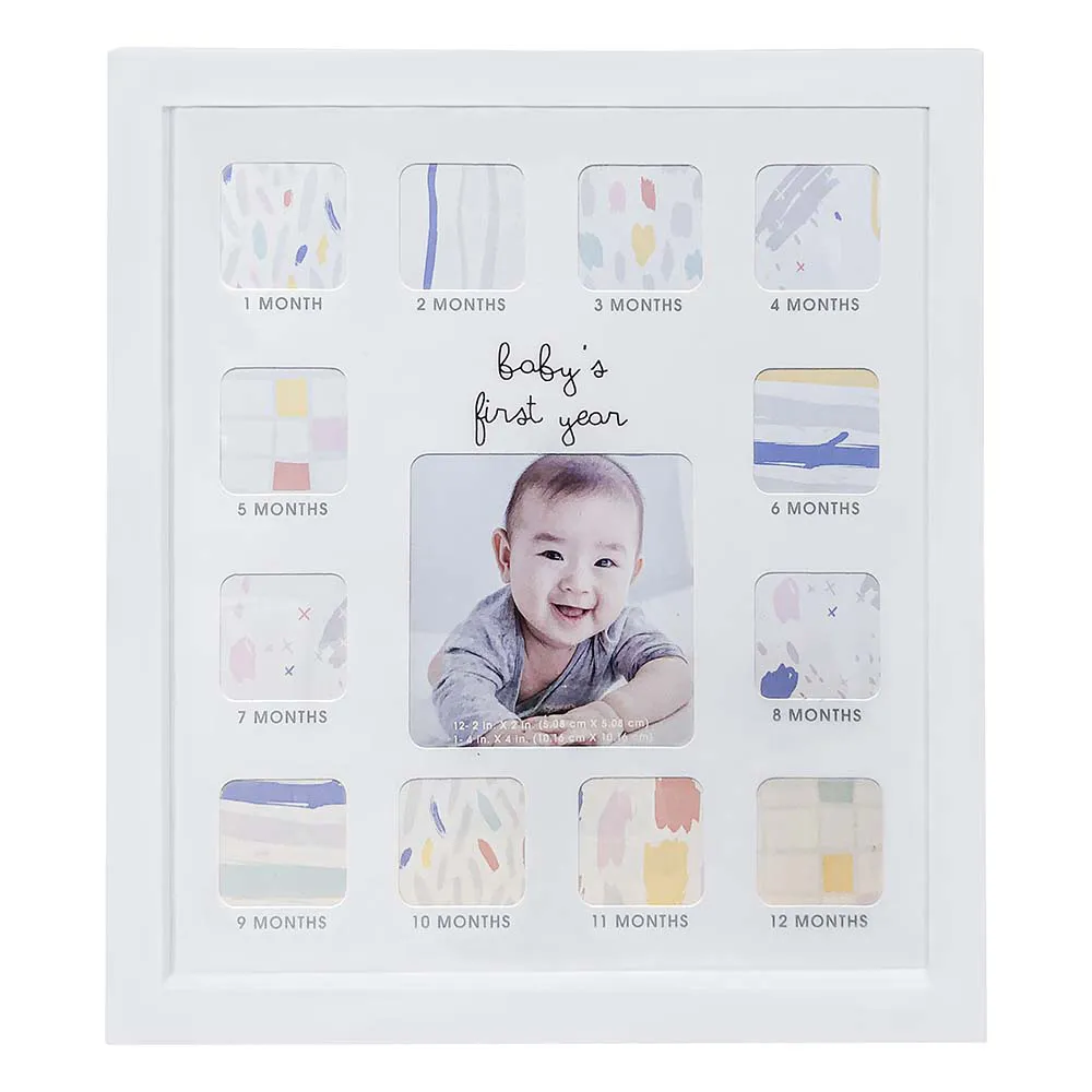 Porta-retrato mural com 12 fotos, ideal para acompanhar memórias mês a mês.