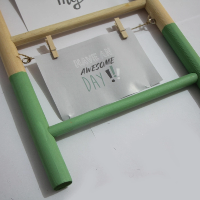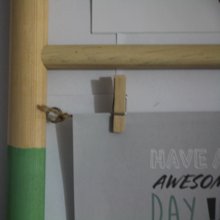 Porta-retrato em madeira com pregadores, ideal para expor fotos com charme e criatividade.