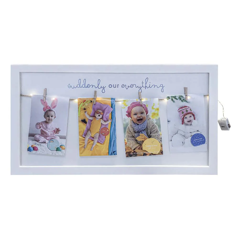 Porta-retrato mural com 4 fotos, ideal para destacar memórias com charme.