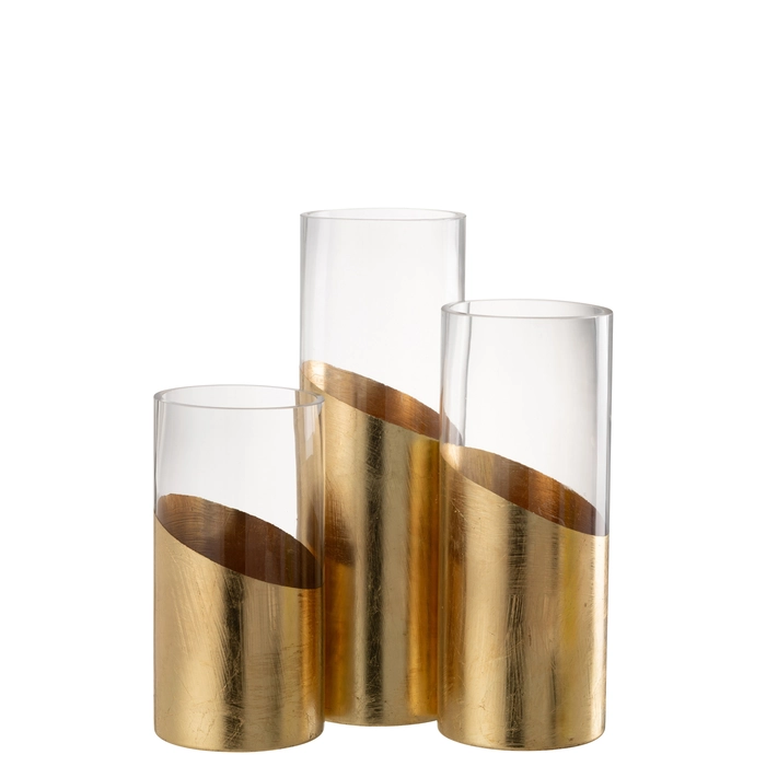 Vaso Moa Transparente/Dourado 30x10x10cm