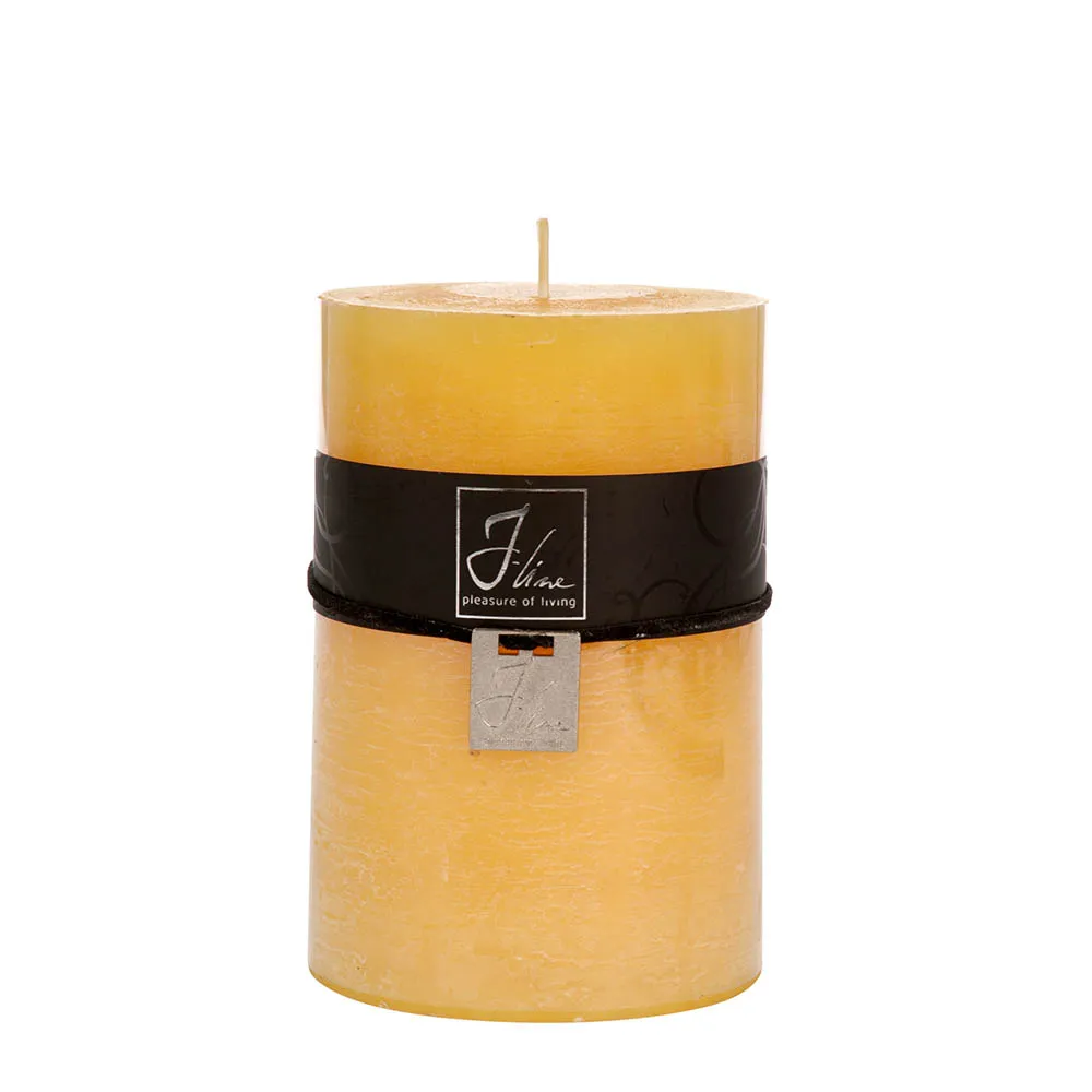 Vela cilíndrica amarela em parafina, ideal para compor a decoração com cor vibrante, aconchego e elegância. Perfeita para ambientes acolhedores.